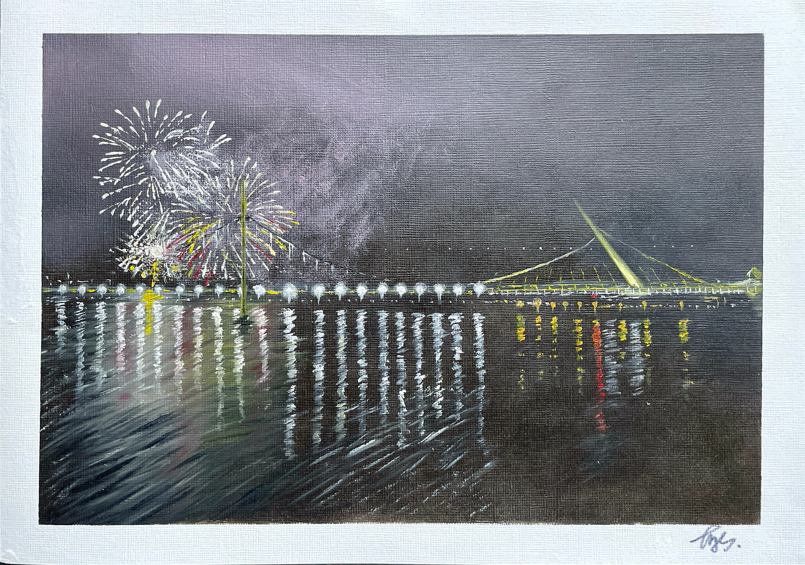 A4 prints of my oil painting of the Peace bridge, Derry/Londonderry, at Halloween night.